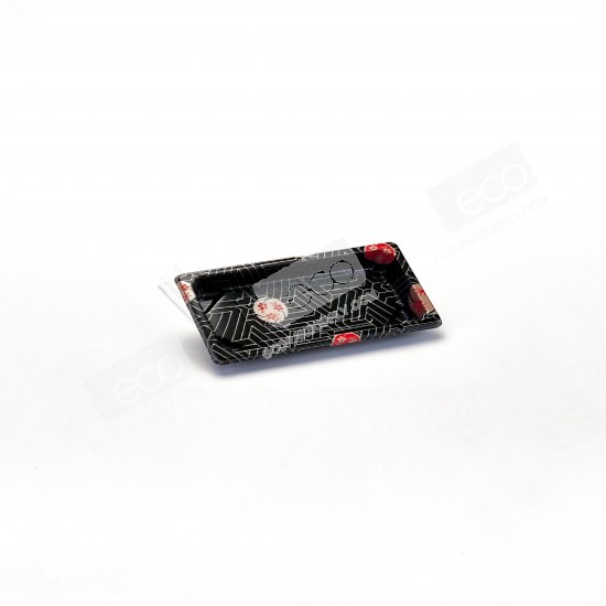 1. กล่องซูชิกระดาษ ลายแดง+ดำ พร้อมฝา PET ใส SKS20-12(50ชุด/แพค)