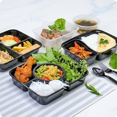 กล่องอาหาร PP ดำ 840 ml + ฝาใส eici (EP)(25ชุด/แพค)