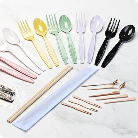 ชุดช้อน+ส้อม+มีด+ทิชชู่ PSสีดำ แพ็คในซองพลาสติก (OR)(50ชุด/แพค)